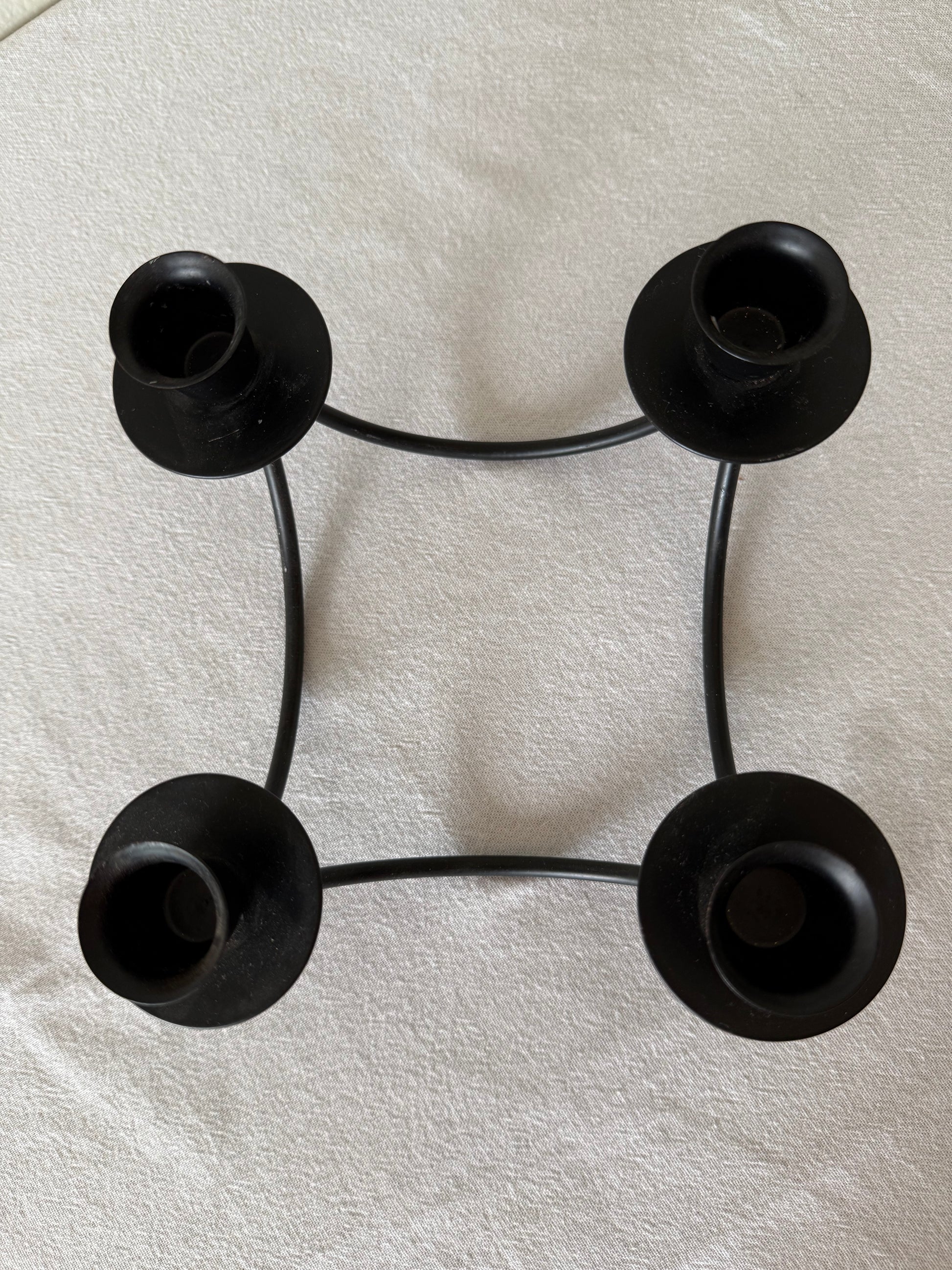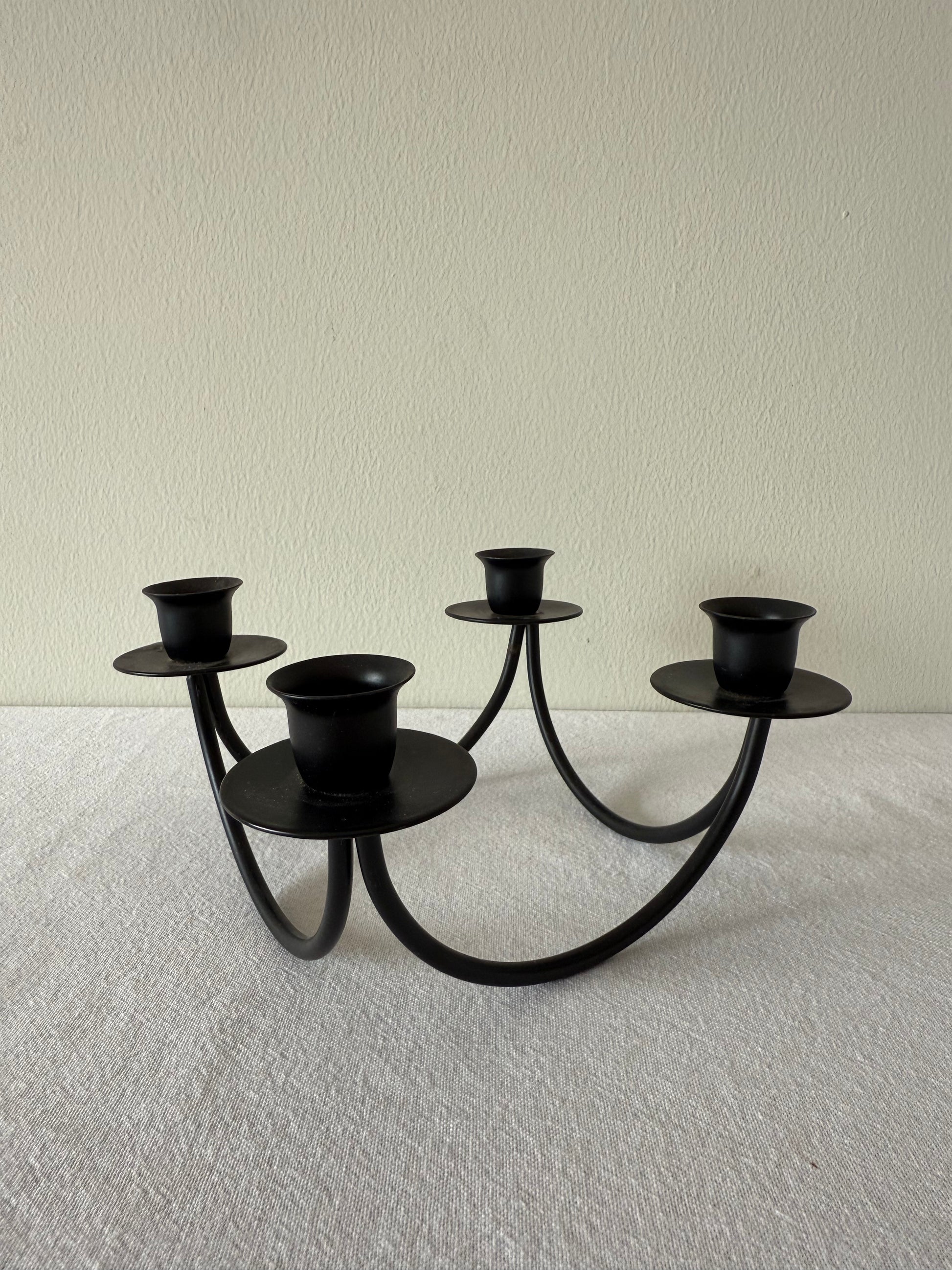 Vintage black wrought iron candelabra adding drama and timeless elegance to your home and table.