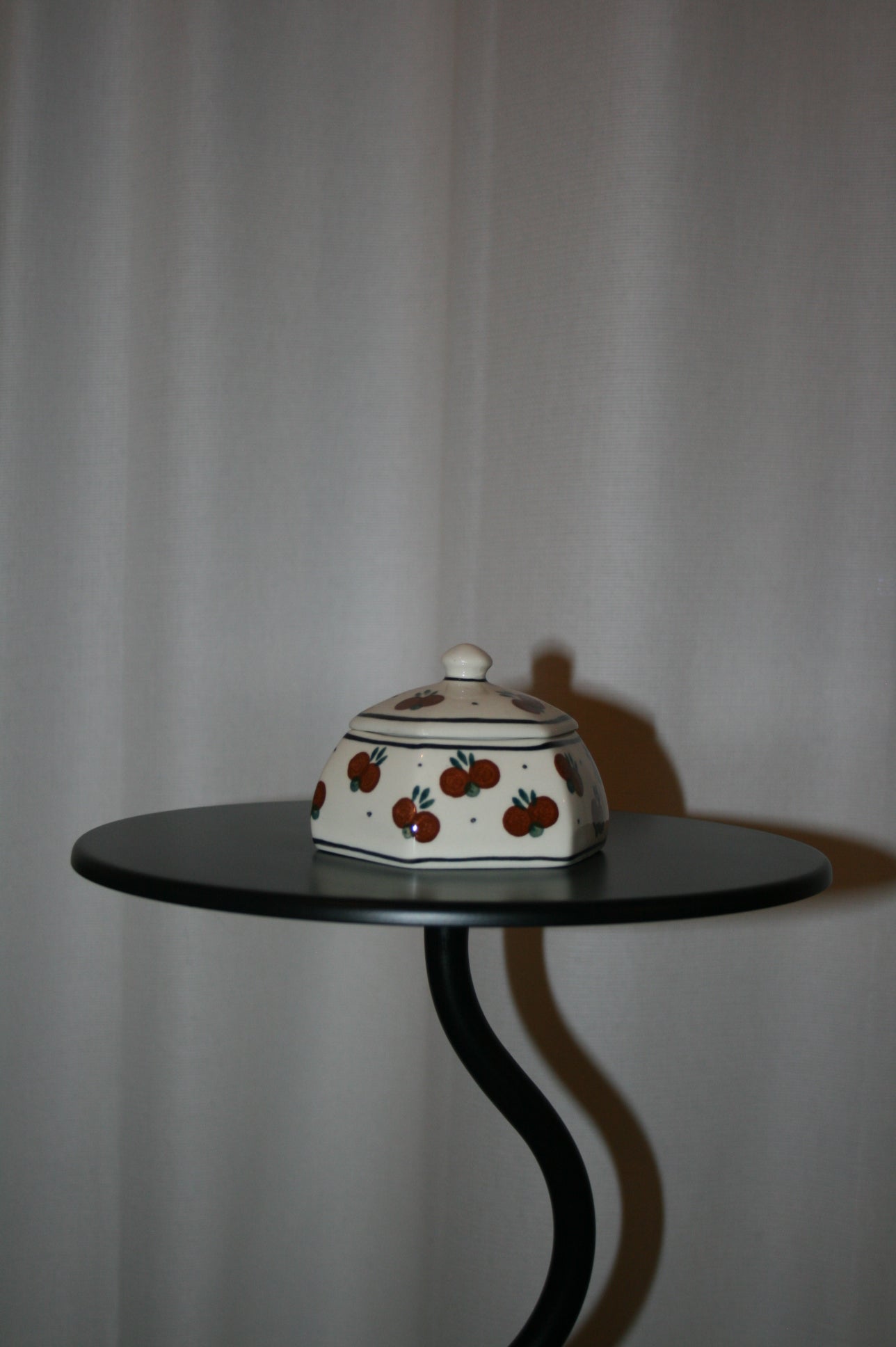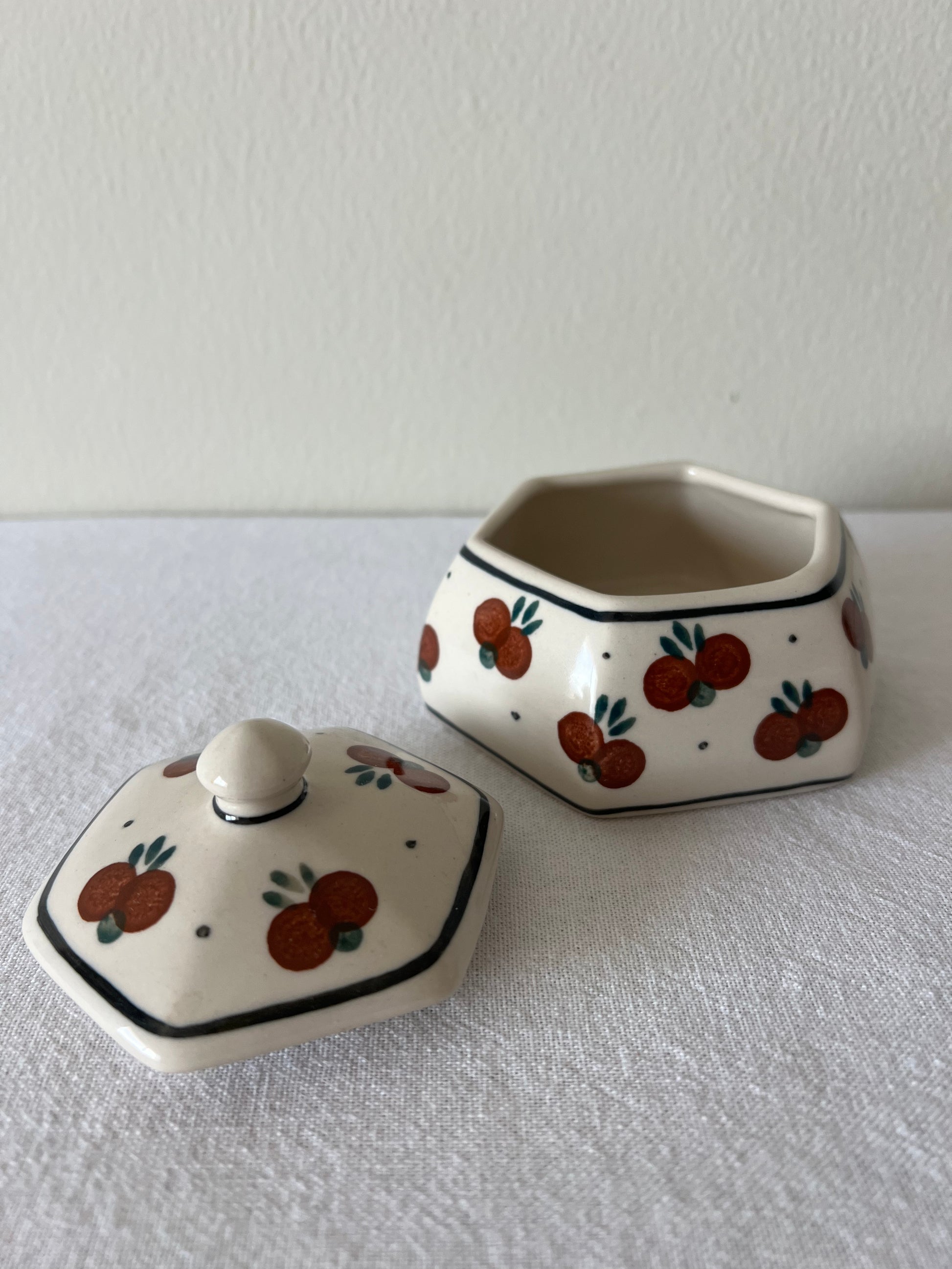 Cute cherry trinket dish with removable lid, handmade in Poland.