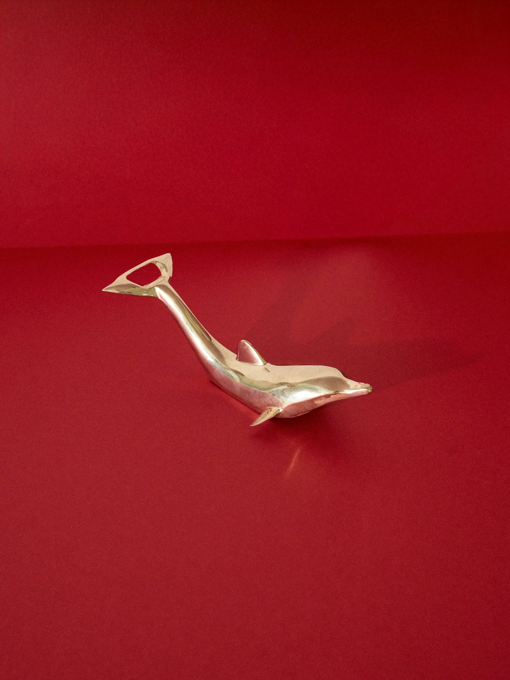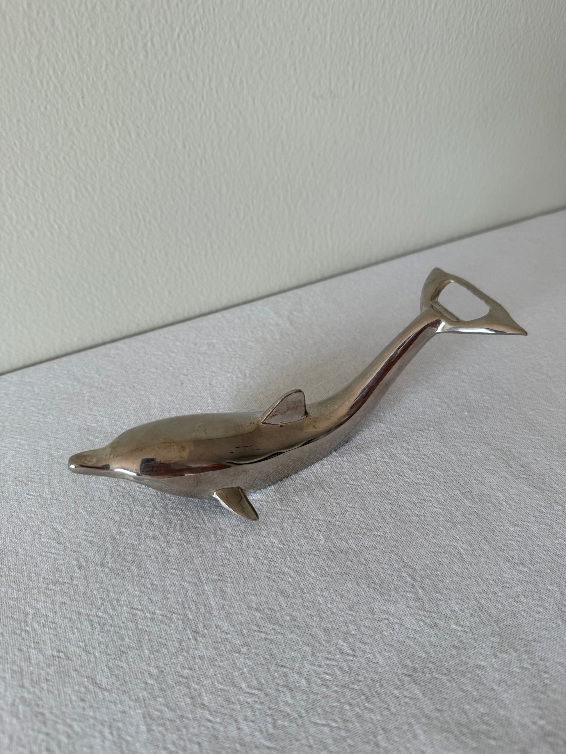 90's vintage silver plated dolphin bottle opener and screw cap removed. A cool gift or statement for any home bar.