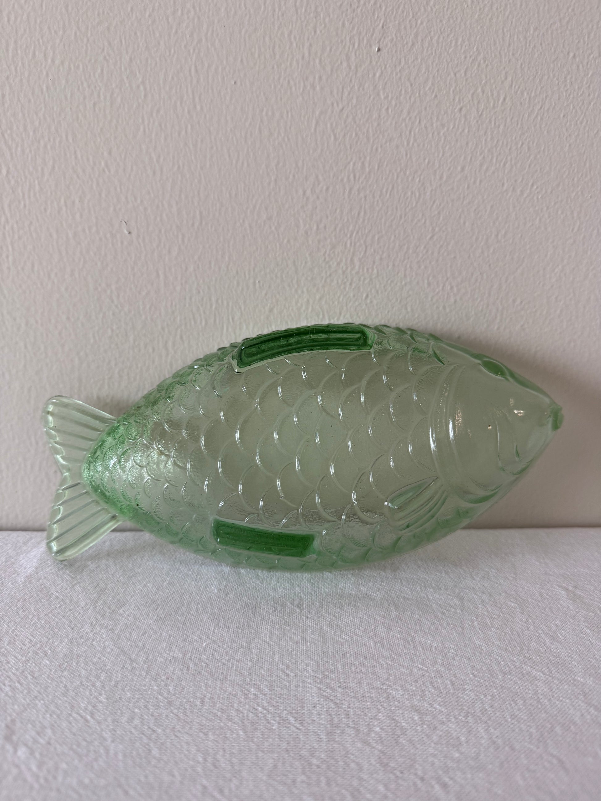 Vintage glass fish dish, perfect for adding charm to dinner parties or al fresco dining. Ideal for olives, dips or small sides.