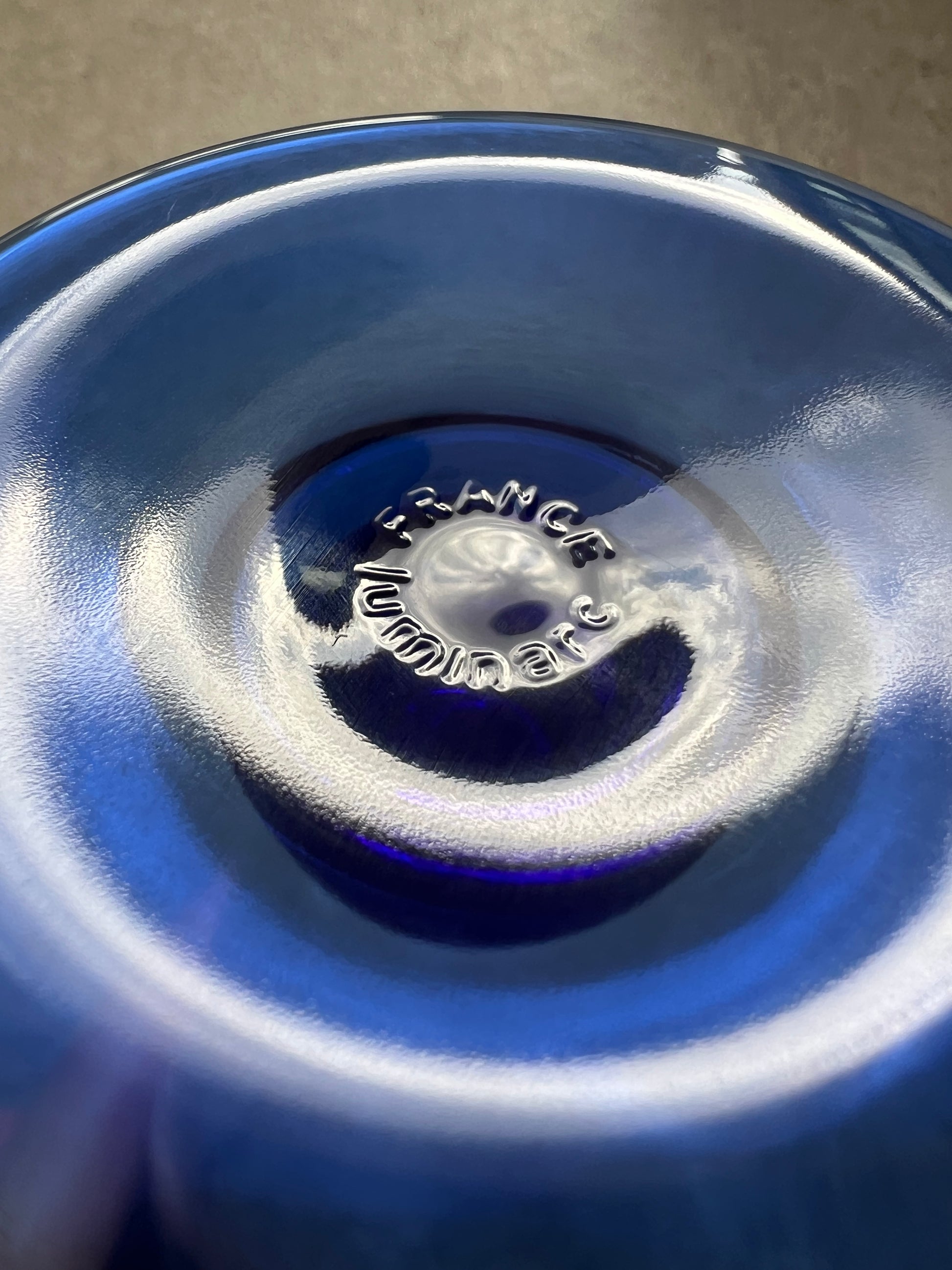 Elevate your next toast with these charming flutes with blue bases by Luminarc France.