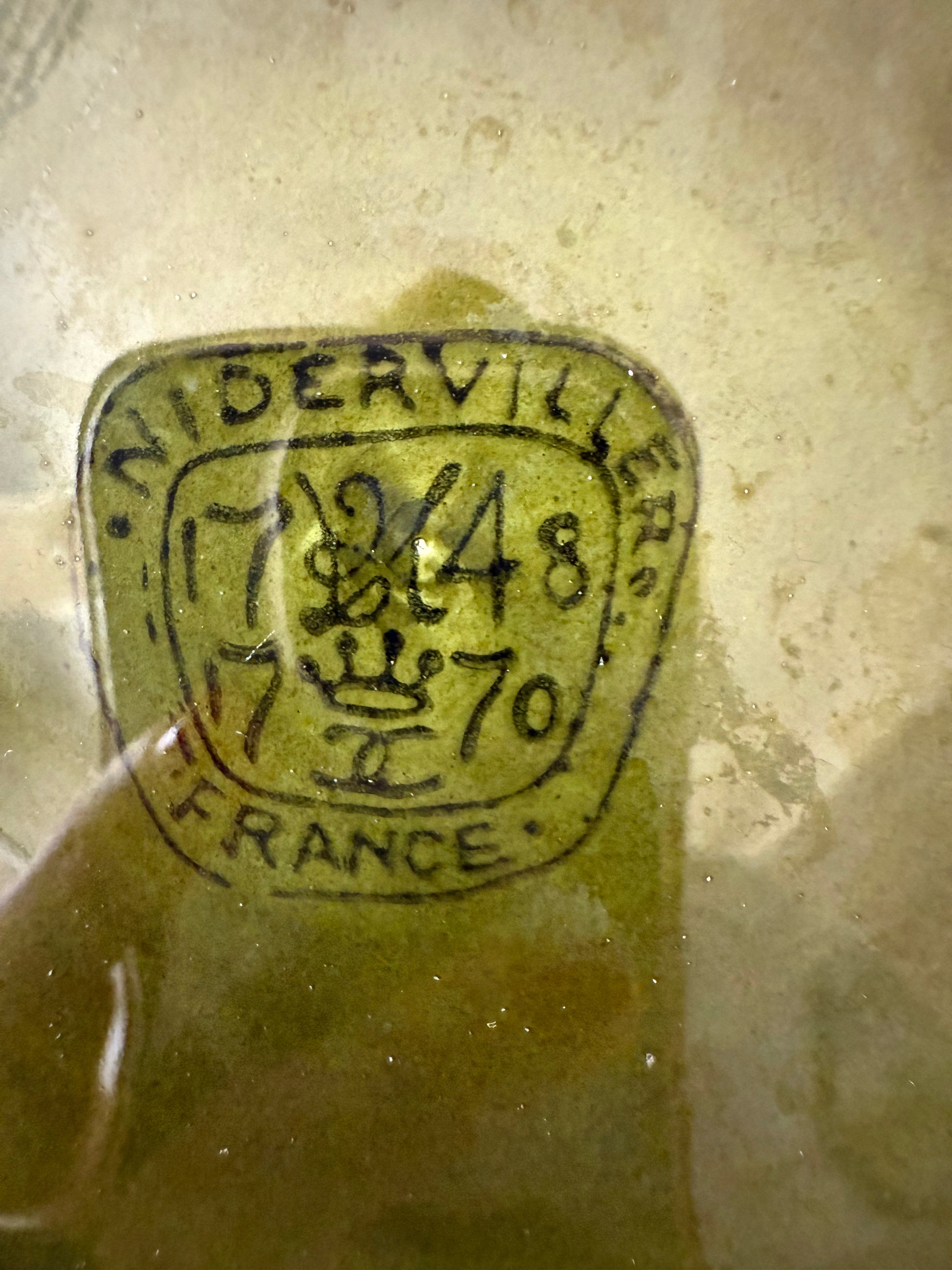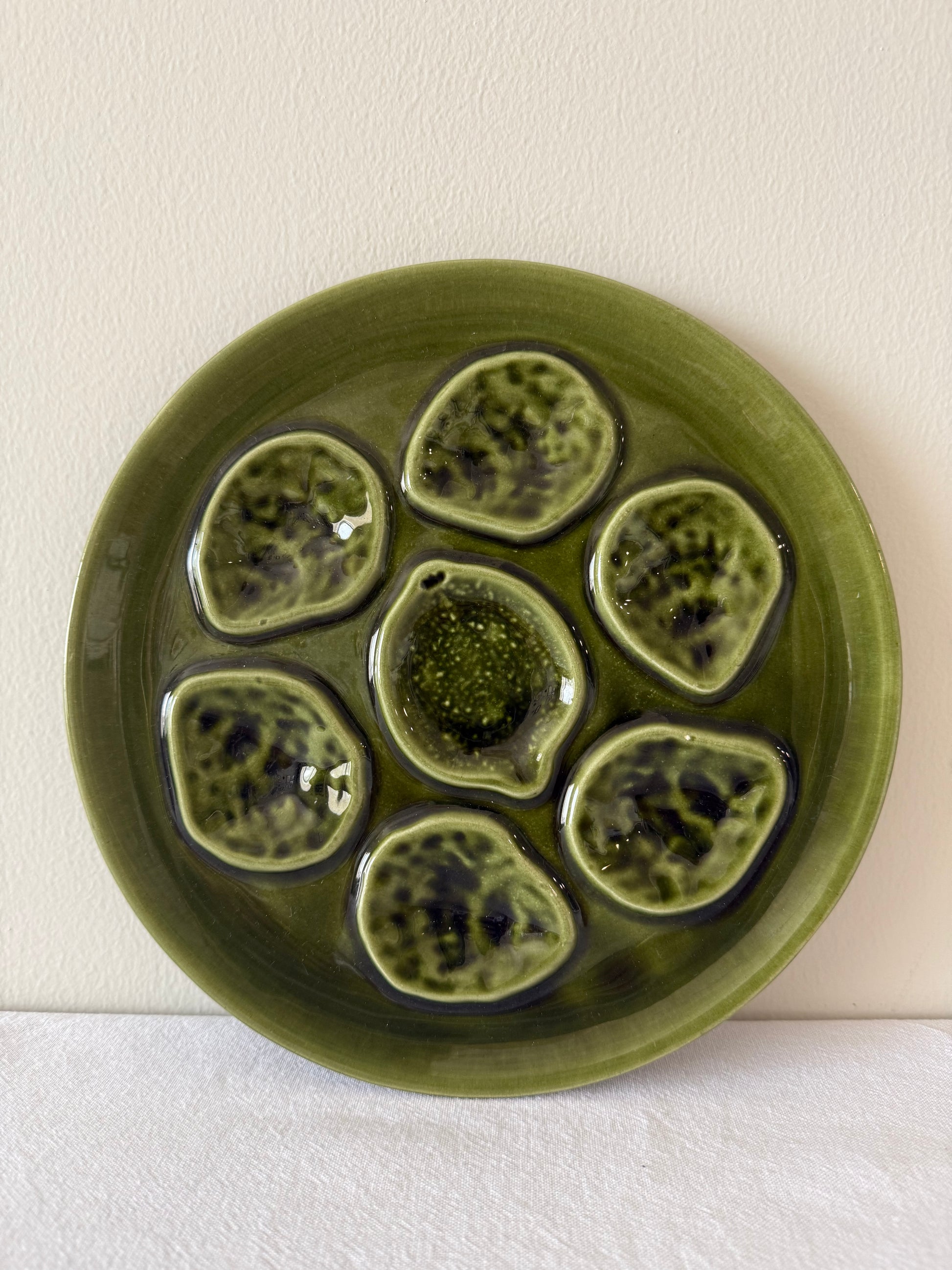 Vintage Niderviller France oyster plate. Perfect for oysters, anti pasti or for gifting. With six scalloped oyster wells and a central sauce well ideal for lemon or mignonette.