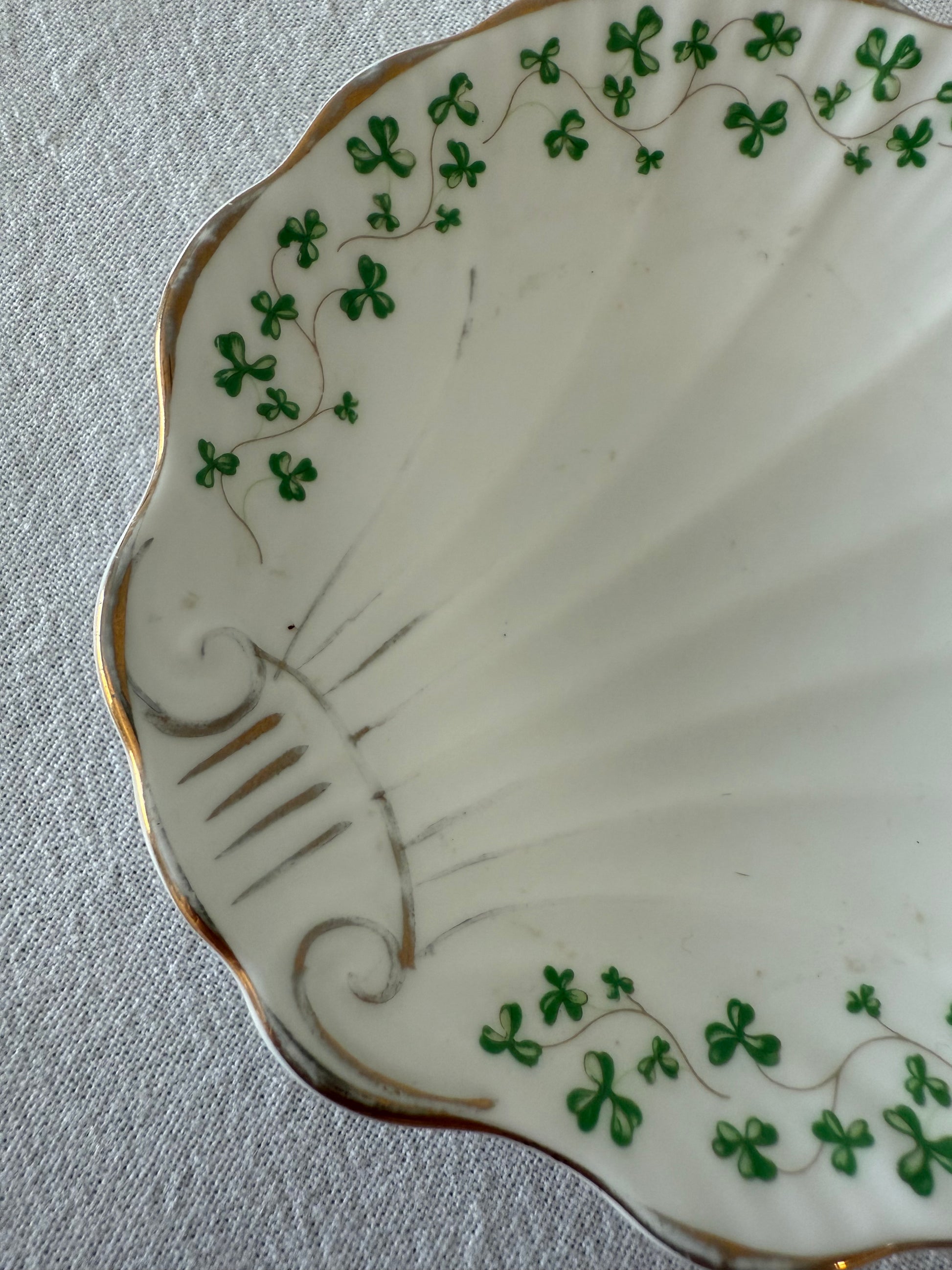 Royal Tara vintage fine bone china shamrock shell, adding a touch of Irish charm to your home. Perfect for trinkets, or as a soap or salt dish.